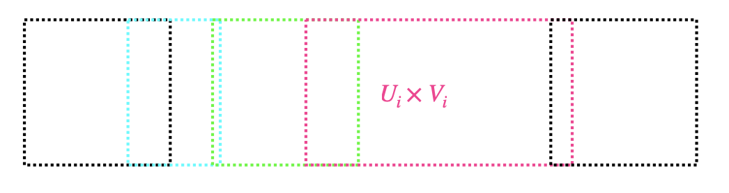 Fixing i ∈ I, U × Vi is the union of the sets Uj × Vi, where j ranges over I. That is a horizontal union of elements of A∞(U), hence is itself in A∞(U). Then U × V is the union of the sets U × Vi, where i ranges over I, hence is a vertical union of elements of A∞(U). It follows that U × V is also in A∞(U). ☐